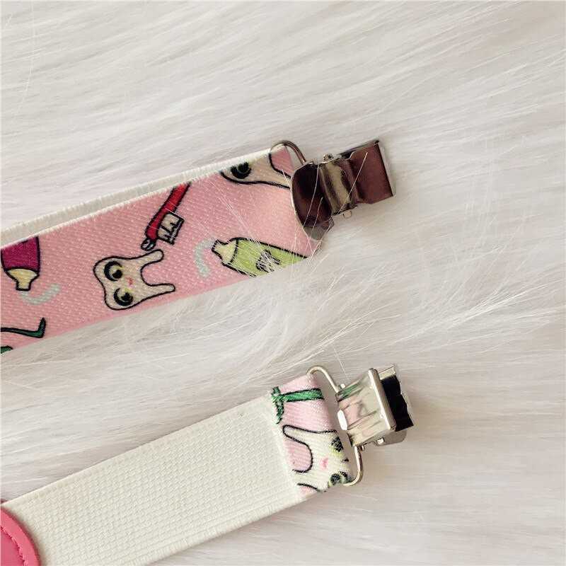 Die Baby-Hosenträger mit kleinen Zähnchen in Rosa sind das perfekte Geschenk für werdende Zahnärzt:innen, ZFA’s oder Dentalhygieniker:innen. 👶🦷✨