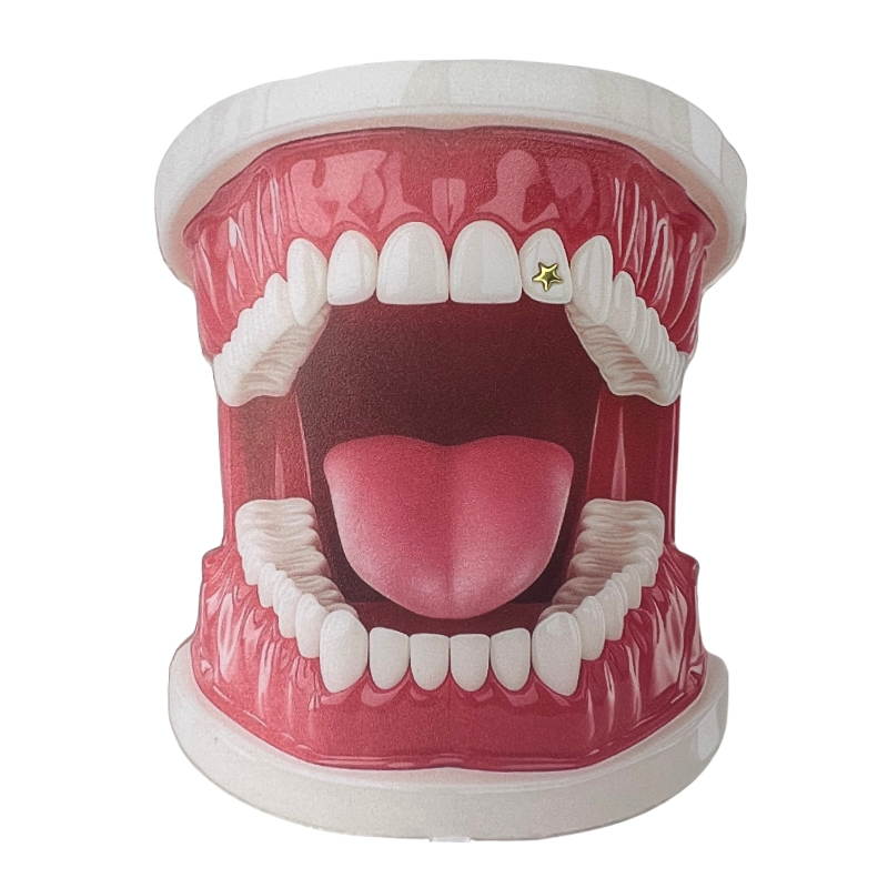 L’étoile symbolise la lumière, l’espoir, les rêves et l’énergie positive. Ce bijou dentaire étoile en or ajoute une touche brillante, élégante et remarquable à votre sourire. Idéal pour ceux qui recherchent un tooth gem en or classique et luxueux.