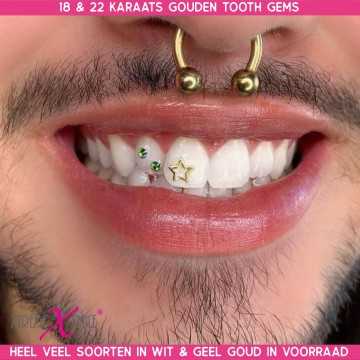 Ajoutez une touche raffinée, élégante et moderne à votre sourire avec ce bijou dentaire en forme d’étoile ouverte, fabriqué en or massif 18 carats.