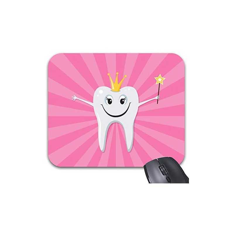 Un tapis de souris joyeux de couleur rose avec une dent. Idéal comme cadeau, mais aussi parfait pour toute clinique ou salon spécialisé dans les soins dentaires.