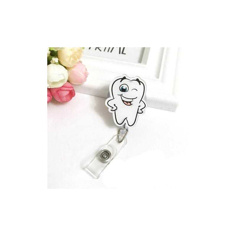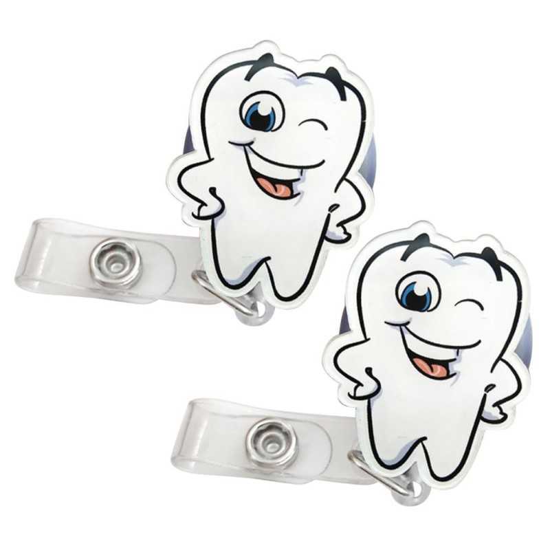 Ce porte-badge en forme de dent est conçu pour les cabinets dentaires et centres de soins. Doté d’un cordon extensible, il permet un accès rapide et pratique aux cartes d’identification.