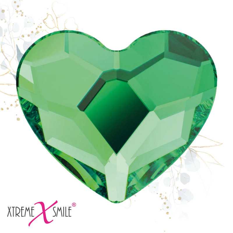 Les cristaux dentaires, ou toothgems, ne sont plus à présenter : ils sont désormais très populaires. Ce sont de petites pierres scintillantes appliquées sur la surface de la dent pour créer un look unique et accrocheur. Avec ces cristaux dentaires verts en forme de cœur, vous serez toujours rayonnant(e).