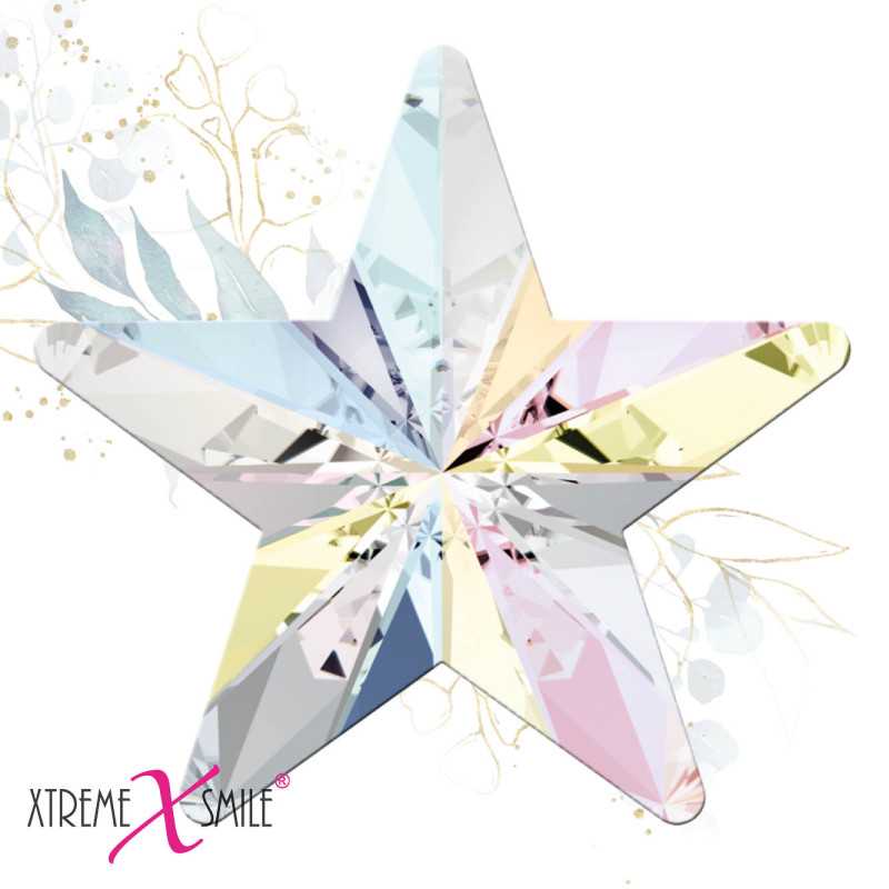 Swarovski Aurora Pointed Rivoli Star Tooth Gems bring stunning iridescent sparkle to the smile. These premium crystals shift beautifully between pastel blues, pinks and golds, perfect for dreamy artistic tooth gem designs.
