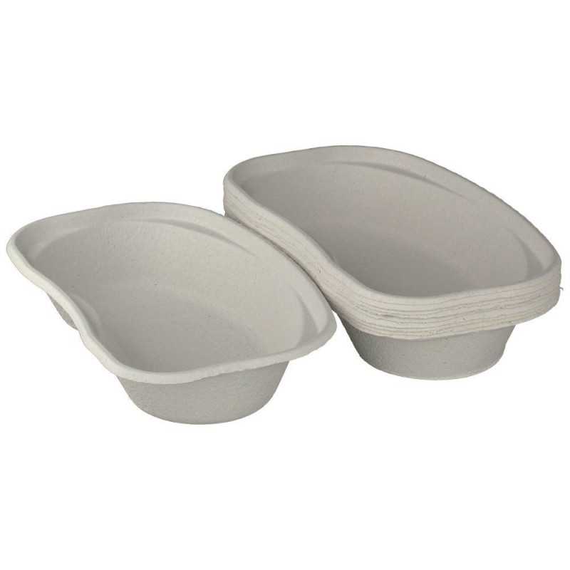 Cardboard kidney trays made from eco-friendly pulp are hygienic, single-use and space-saving thanks to their stackable design.