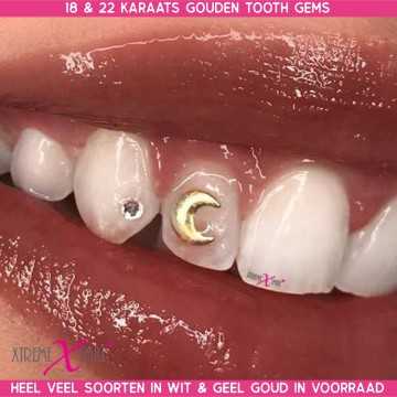This gold moon tooth gem, crafted from solid 22-karat real gold, is a mystical, sparkling and luxurious gold moon tooth jewel that adds powerful, feminine and elegant energy to your smile.