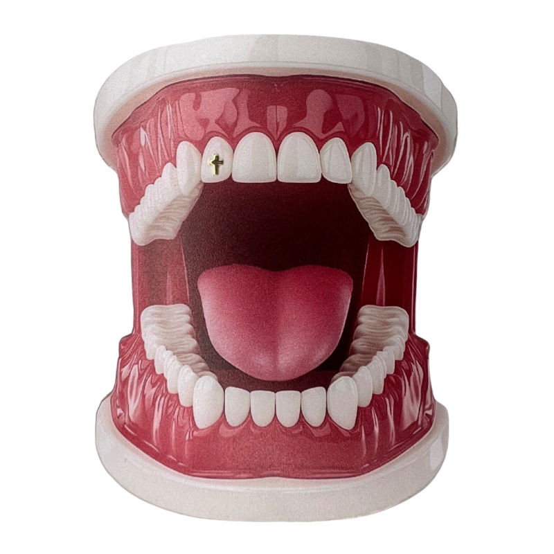 With this white gold cross tooth gem, every smile gains a refined, meaningful and elegant touch.