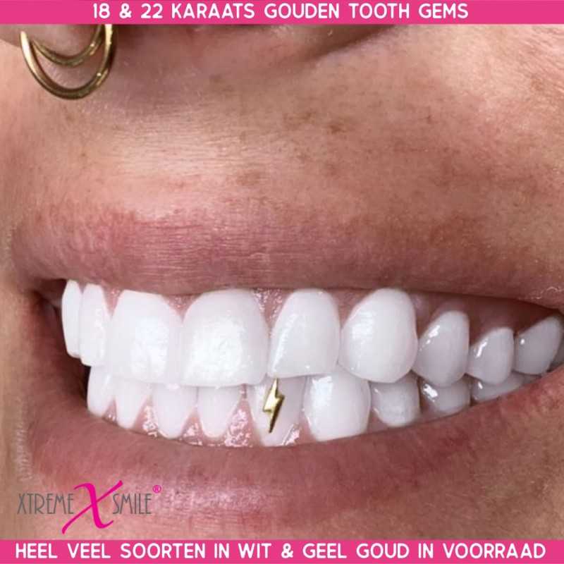 Make your smile strike like lightning with this white gold lightning bolt tooth gem.