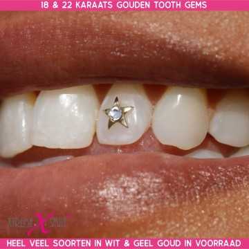 With this gold star tooth gem with diamond, you add a glamorous touch to your smile.