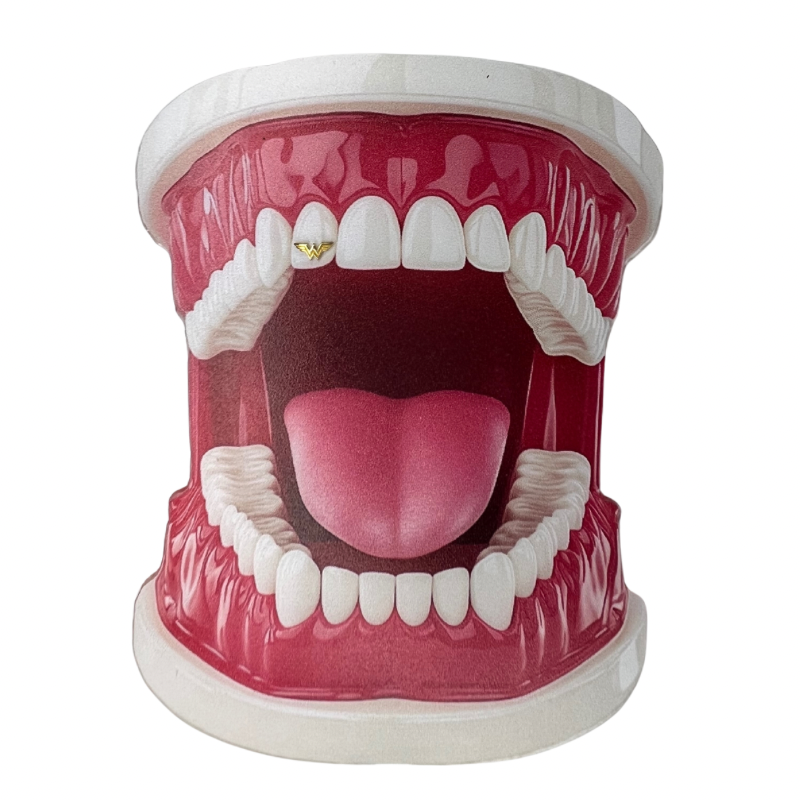With this gold Wonder Woman tooth gem, you add a powerful, stylish and meaningful touch to your smile.