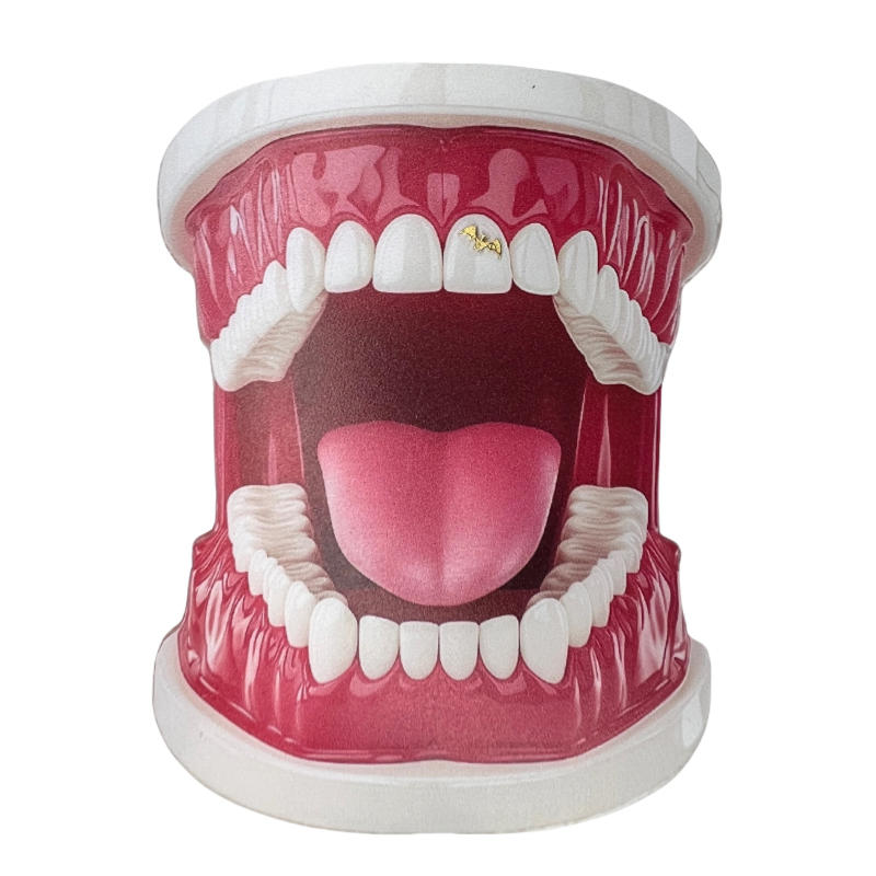 A unique statement piece that adds a playful, spooky and luxurious twist to any smile — perfect for those who love a touch of Bat-style flair.