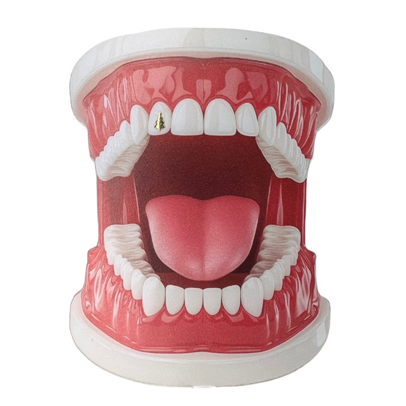 The 18K gold Christmas tree tooth gem is crafted from solid 18-karat real gold — a festive, adorable and luxurious holiday gold tooth gem that gives your smile a warm, sparkling and winter-ready glow.