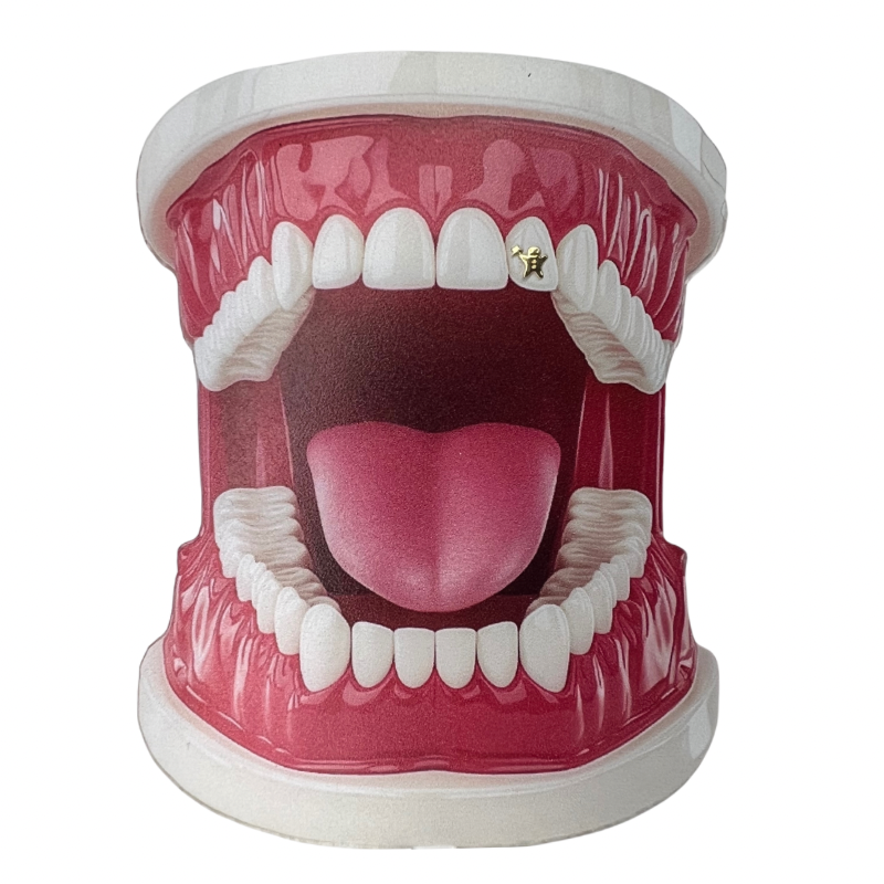 The 18K gold Gingerbread Man tooth gem is crafted from solid 18-karat real gold — a cheerful, playful and festive gingerbread holiday gold tooth gem that transforms any smile into a warm and cozy holiday highlight.