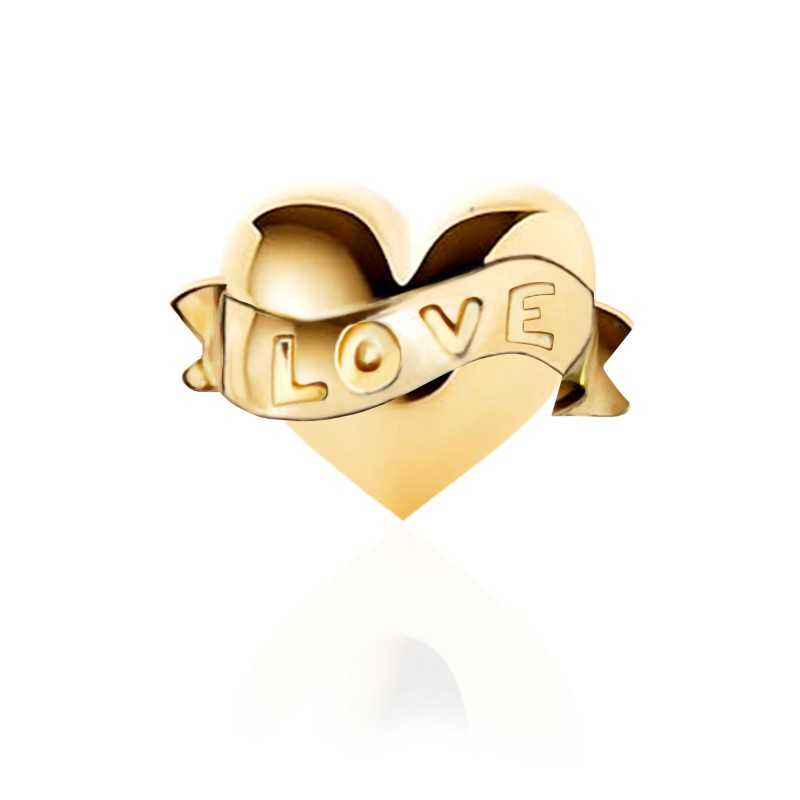 This heart-shaped LOVE design is carefully handcrafted from 100% pure 18K gold.
