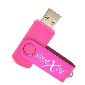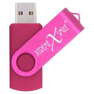 The USB stick features the X-treme Smile® logo and a smooth 360º swivel mechanism, allowing you to use it quickly and safely without worrying about cables or damage. Afterwards, you can reuse the USB drive for your own files, documents, or backups. The pink LED light that turns on when plugged in adds a fun and stylish touch!