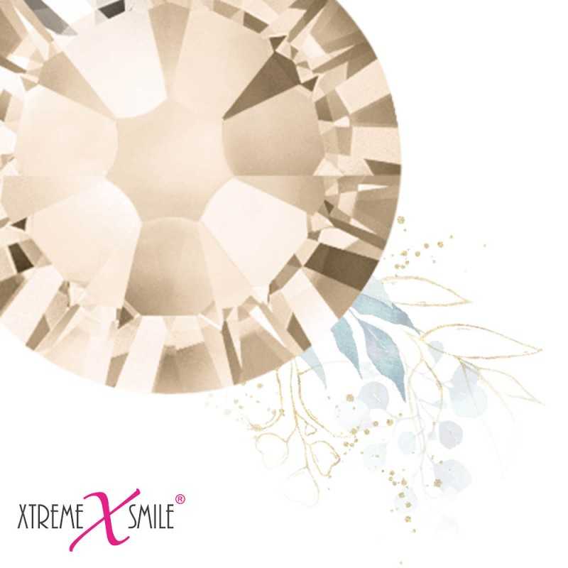 The Light Silk M Swarovski crystals offer an elegant champagne hue that blends beautifully with nude and natural-style tooth gem designs.
