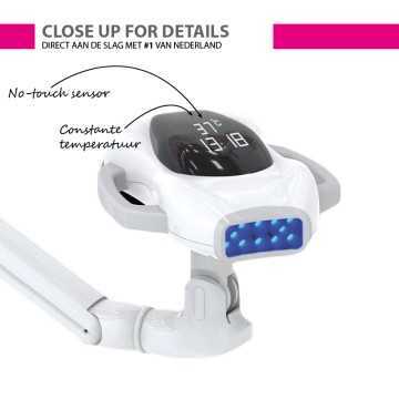 The X-treme Whitening Lamp delivers the same power level as the Ultra while offering additional high-tech features. Its NO-TOUCH activation sensor allows hygienic, hands-free operation. A built-in thermostat maintains a stable operating temperature for optimal gel performance.
