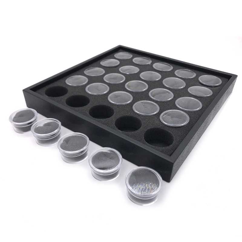 The display includes 25 removable trays with soft protective padding, ideal for storing tooth gems, gold tooth jewelry and small charms. The sturdy and elegant hard frame gives the display a premium appearance, perfect for studio use or mobile kits.