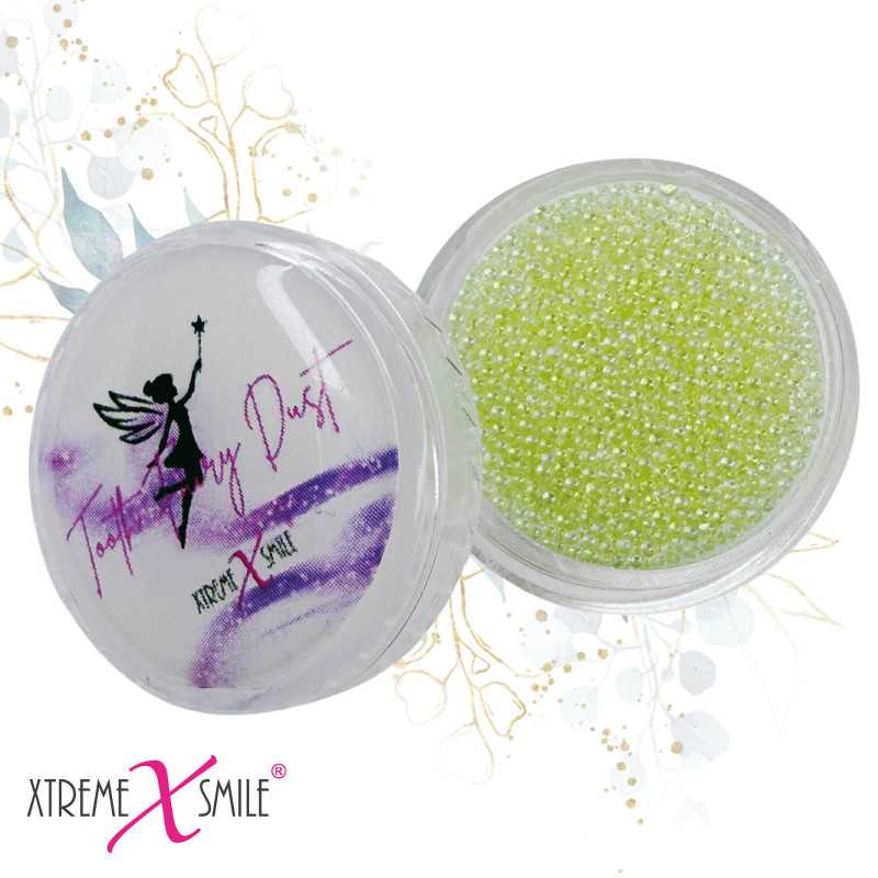 Tooth fairy dust is a very tiny micro pearl mixed with tiny crystals. With tooth fairy dust it is possible to create the most beautiful creations on a tooth and that would be perfect for a shiny wedding for example. Combine our tiny XXS Swarovski crystals as well and shine as no one has ever done before.