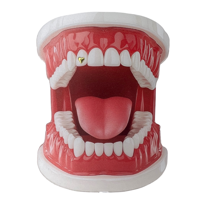 Een klein gouden accent dat je glimlach een persoonlijke en luxueuze glans geeft.