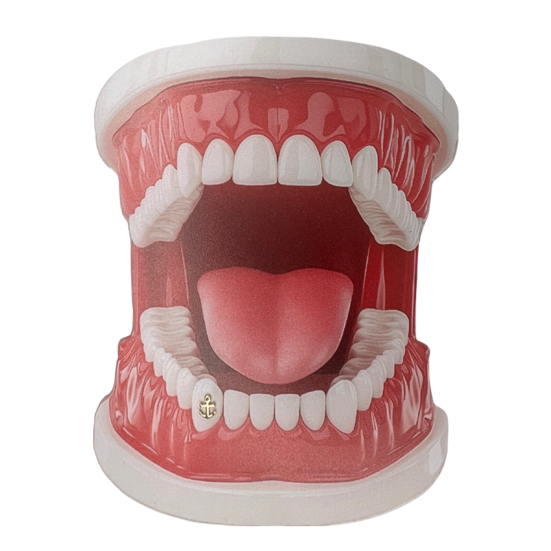 Met dit gouden anker tandsieraad geef je je glimlach een elegante, betekenisvolle touch.