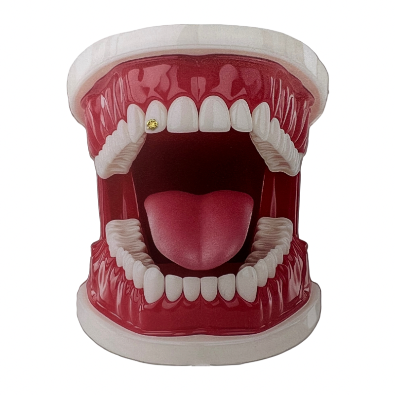 Deze 18 karaats massief gouden tooth gem is niet alleen een stijlvol detail, maar ook een charmant symbool van voorspoed en positiviteit.