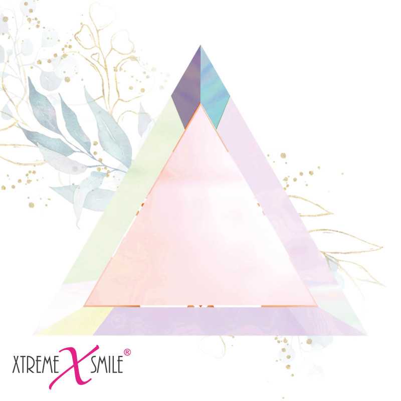 Swarovski tandkristallen Driehoek Aurora zijn unieke triangle-shaped tooth gems met een schitterende aurora regenboogglans. Dankzij hun scherpe geometrische vorm en iriserende reflectie creëren deze premium crystals een opvallende, moderne en kunstzinnige uitstraling op elke tand. Perfect voor tooth gem artists die graag werken met bijzondere vormen en kleurrijke lichtaccenten.