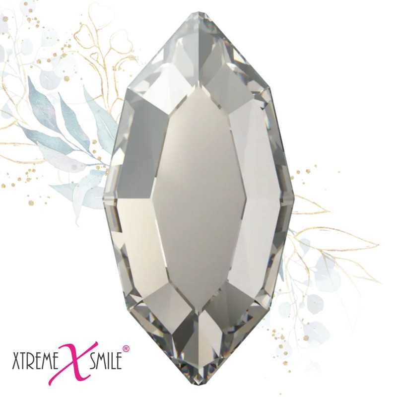 Swarovski Cat Eye tandkristallen in de kleur Clear Silver β een elegante, opvallende en luxueuze tanddecoratie met een unieke langwerpige vorm.